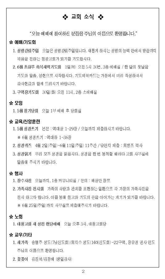 2023³â 5¿ù 14ÀÏ ±³È¸ÁÖº¸_ºÎȰÀý ¿©¼¸Â°ÁÖÀÏ/½º½ÂÀÇÁÖÀÏ