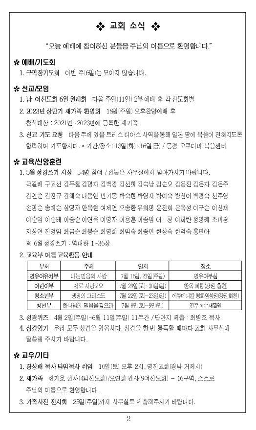 2023³â 6¿ù 11ÀÏ ±³È¸ÁÖº¸_¼º·É°¸² ÈÄ µÑ°ÁÖÀÏ/ÃÑȸ¼±±³ÁÖÀÏ