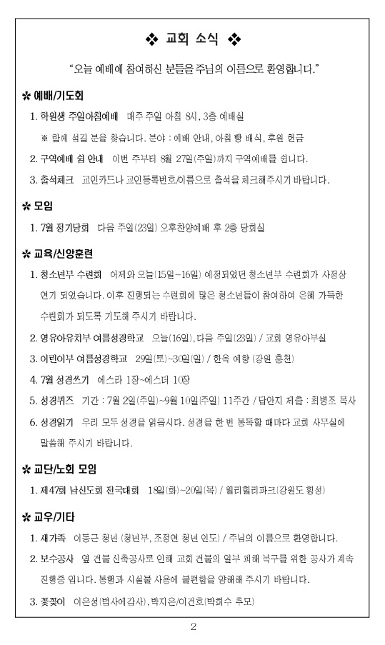 2023³â 7¿ù 23ÀÏ ±³È¸ÁÖº¸_¼º·É°¸² ÈÄ ¿©´ü°ÁÖÀÏ