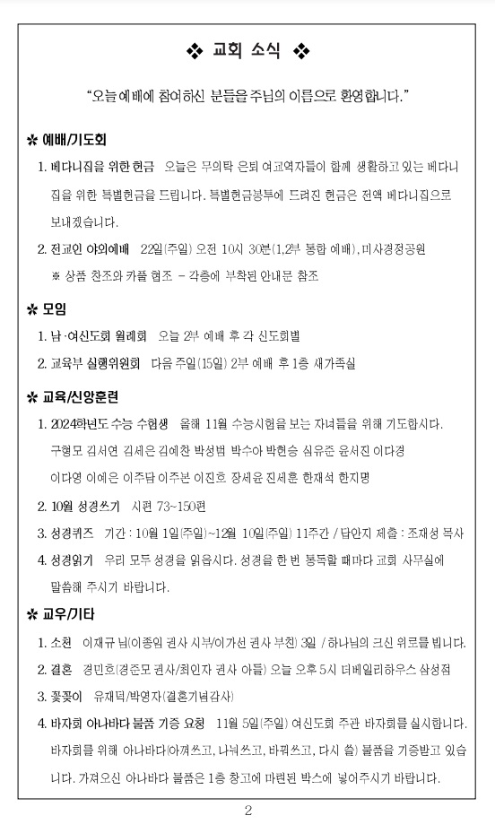 2023³â 9¿ù 10ÀÏ ±³È¸ÁÖº¸_âÁ¶Àý µÑ°ÁÖÀÏ