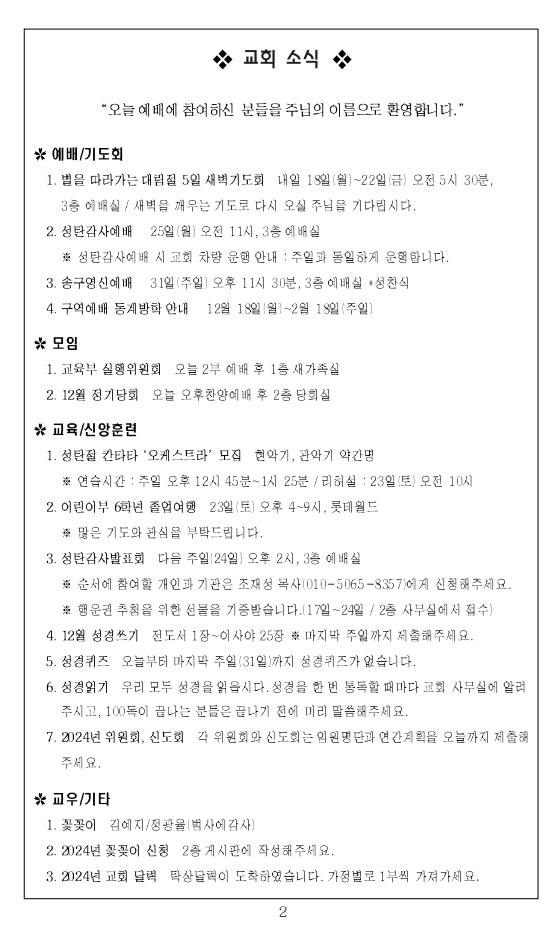 2023³â 12¿ù 10ÀÏ ±³È¸ÁÖº¸_´ë¸²Àý µÑ°ÁÖÀÏ/¼º¼ÁÖÀÏ