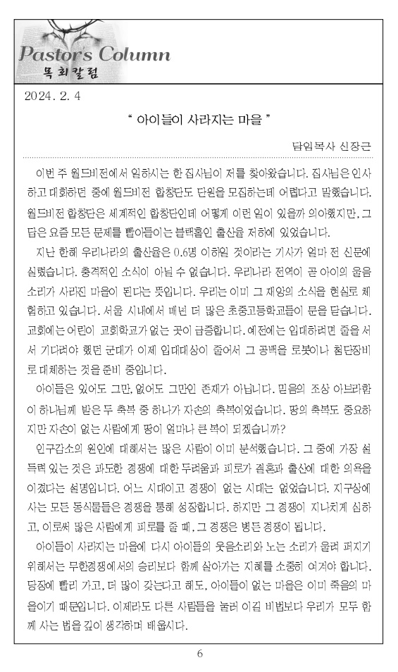 2024³â 2¿ù 4ÀÏ ±³È¸ÁÖº¸_ÁÖÇöÀý ´Ù¼¸Â°ÁÖÀÏ/¼³ÁÖÀÏ