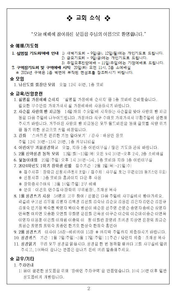 2024³â 1¿ù 14ÀÏ ±³È¸ÁÖº¸_ÁÖÇöÀý µÑ°ÁÖÀÏ