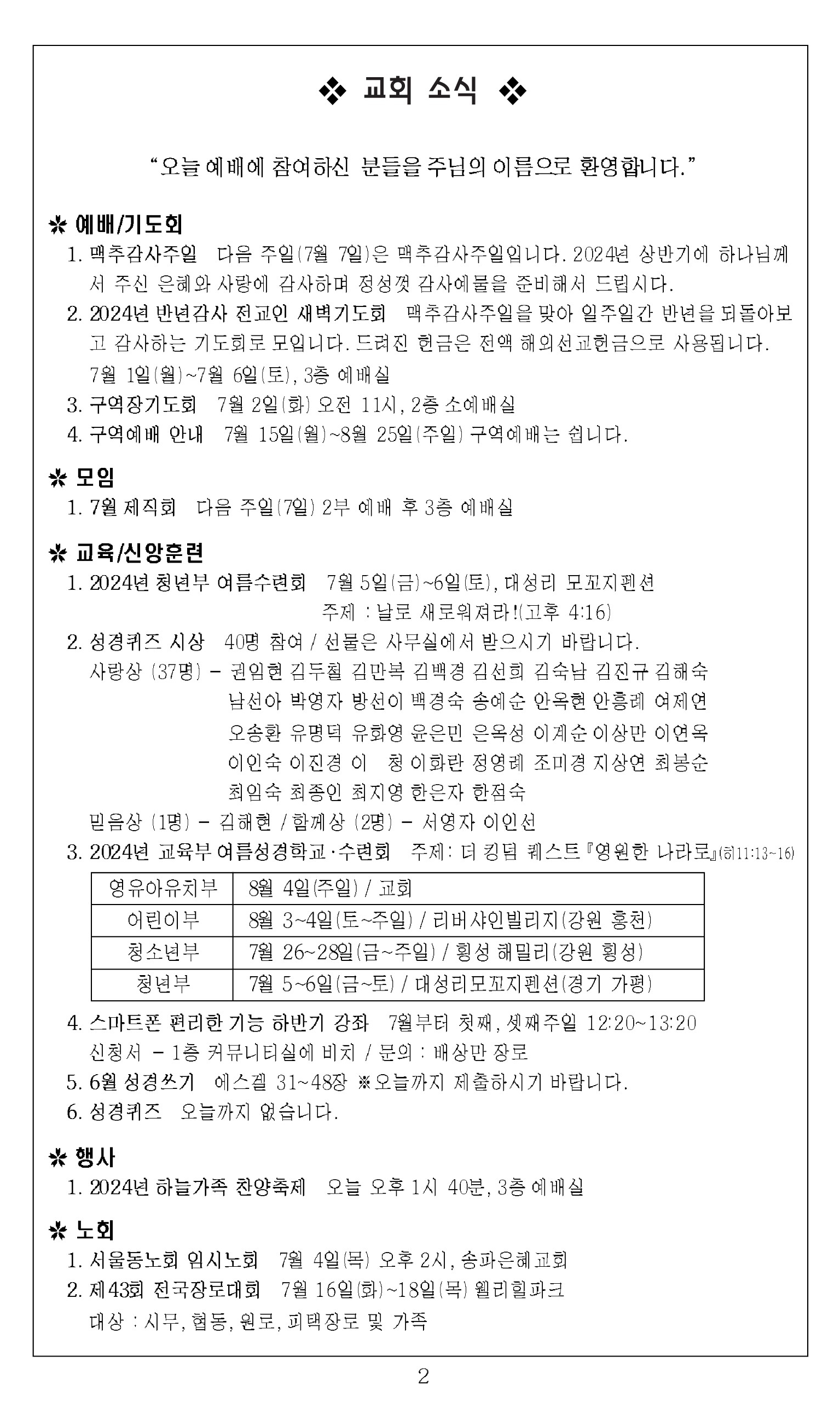 2024³â 6¿ù 30ÀÏ ±³È¸ÁÖº¸_¼º·É°­¸²ÈÄ ¿©¼¸Â°ÁÖÀÏ