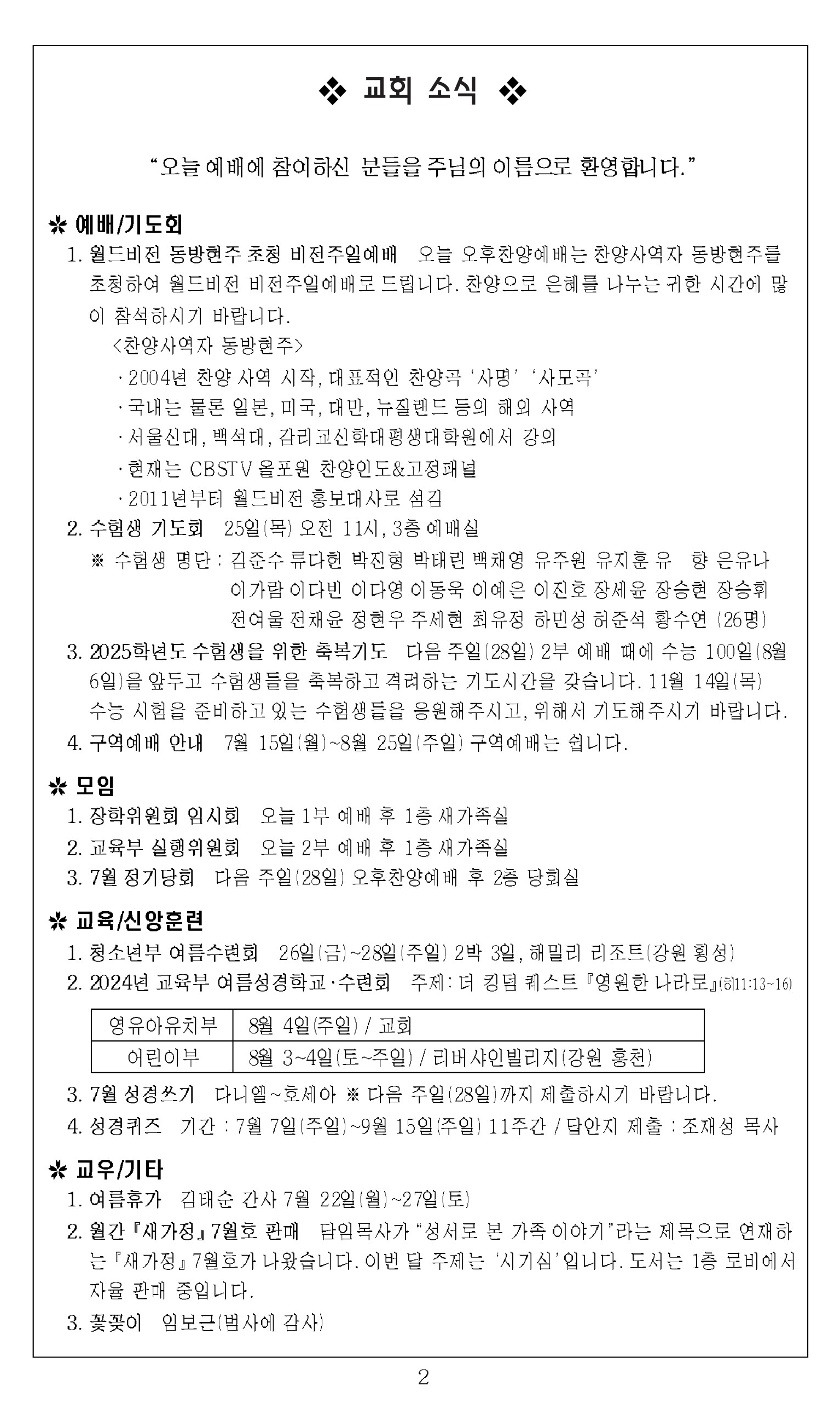 181 2024³â 7¿ù 14ÀÏ ±³È¸ÁÖº¸_¼º·É°­¸²ÈÄ ¿©´ü°ÁÖÀÏ 2024-07-14