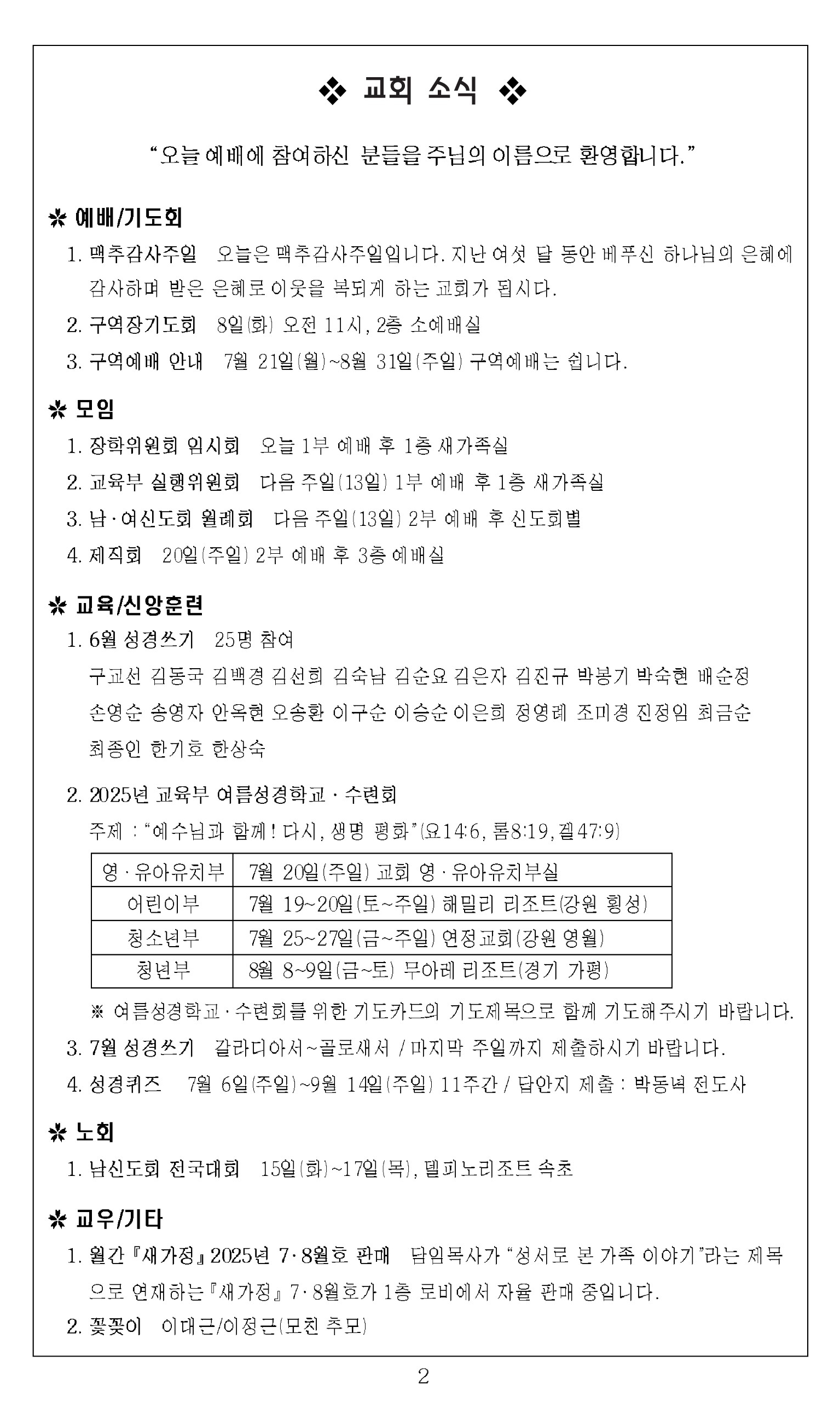 2025³â 7¿ù 6ÀÏ ±³È¸ÁÖº¸_¸ÆÃß°¨»çÁÖÀÏ/¼º·É°­¸²ÈÄ ³Ý°ÁÖÀÏ
