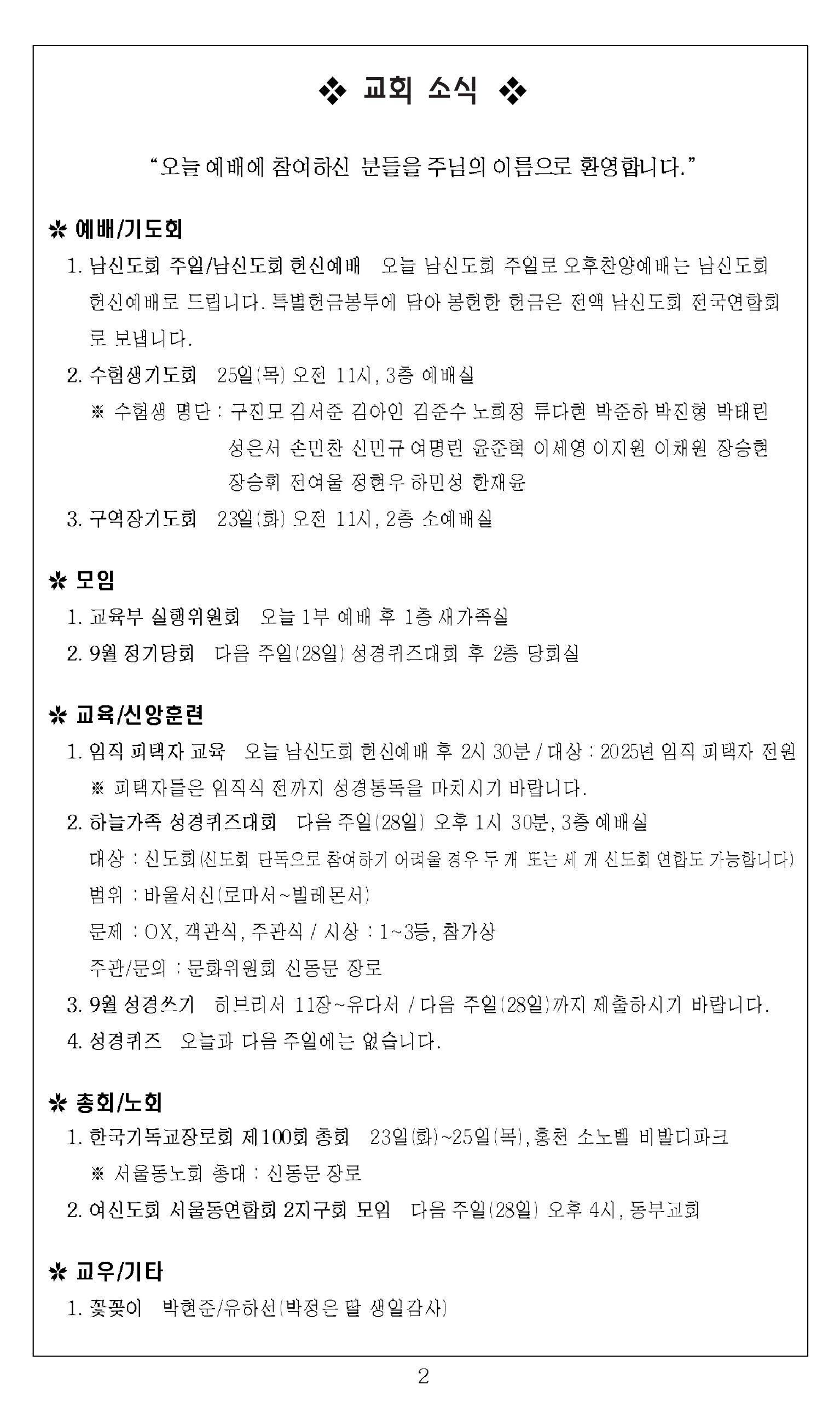 Á¦¸ñ 2025³â 9¿ù 21ÀÏ ±³È¸ÁÖº¸_âÁ¶Àý ¼Â°ÁÖÀÏ À̸§ °ü¸®ÀÚ (dk2031)