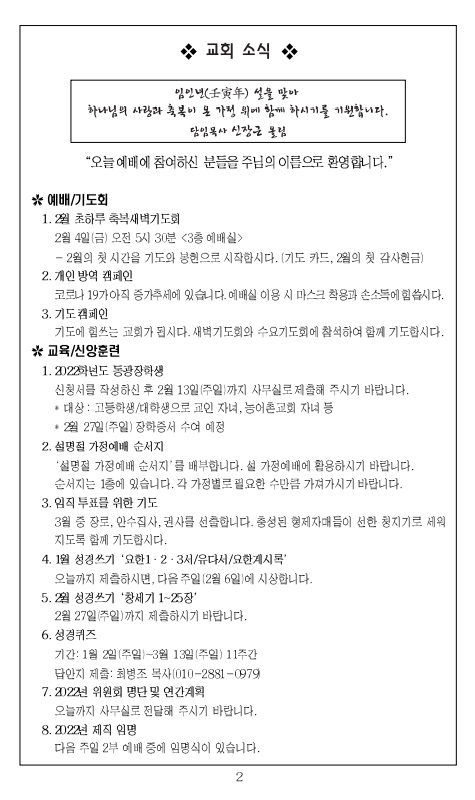 2022³â 1¿ù 2ÀÏ ±³È¸ÁÖº¸_¼ºÅºÀý µÑ°ÁÖÀÏ/»õÇØÁÖÀÏ