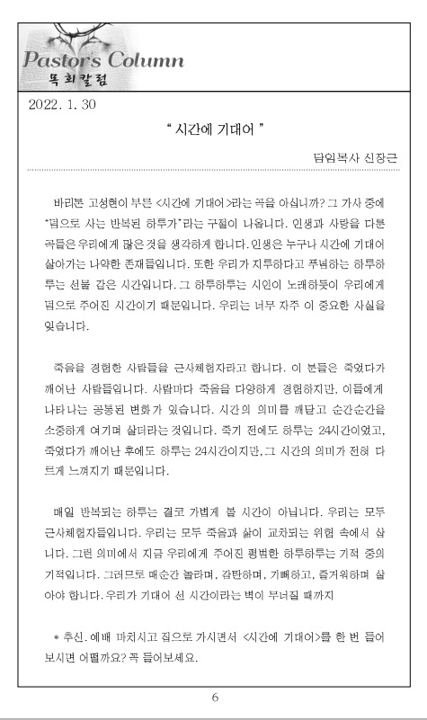 2022³â 2¿ù 6ÀÏ ±³È¸ÁÖº¸_ÁÖÇöÀý ´Ù¼¸Â°ÁÖÀÏ/ÇØ¿Ü¼±±³ÁÖÀÏ