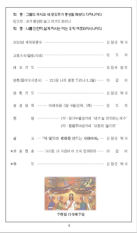 2022³â 2¿ù 6ÀÏ ±³È¸ÁÖº¸_ÁÖÇöÀý ´Ù¼¸Â°ÁÖÀÏ/ÇØ¿Ü¼±±³ÁÖÀÏ