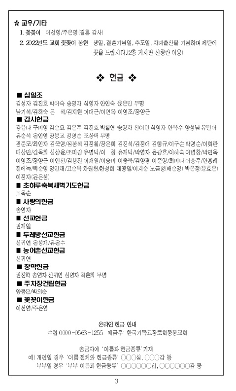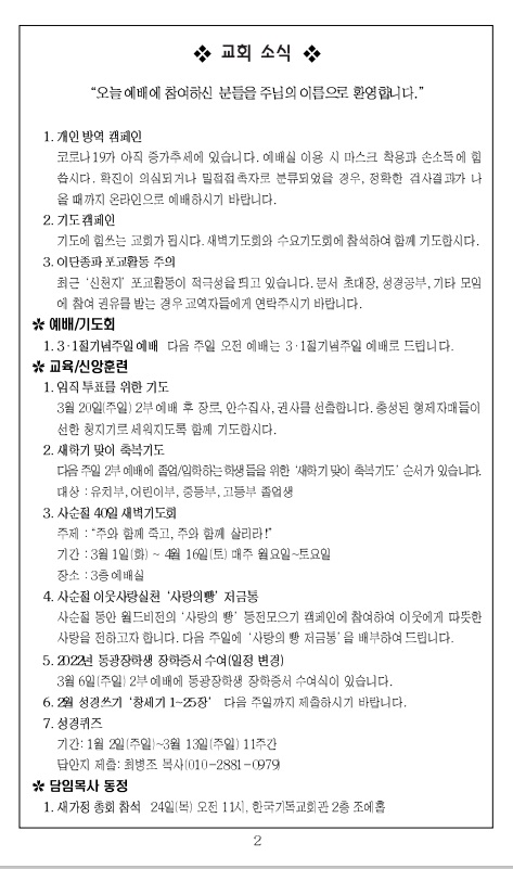 2022³â 1¿ù 2ÀÏ ±³È¸ÁÖº¸_¼ºÅºÀý µÑ°ÁÖÀÏ/»õÇØÁÖÀÏ