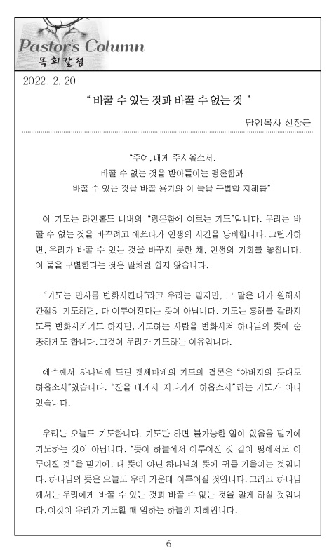 2022³â 2¿ù 6ÀÏ ±³È¸ÁÖº¸_ÁÖÇöÀý ´Ù¼¸Â°ÁÖÀÏ/ÇØ¿Ü¼±±³ÁÖÀÏ