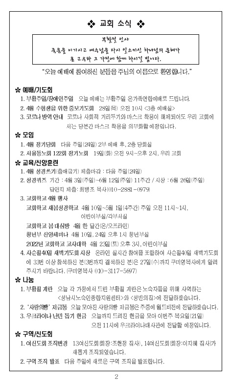2022³â 4¿ù 24ÀÏ ±³È¸ÁÖº¸_ºÎȰÀý µÑ°ÁÖÀÏ