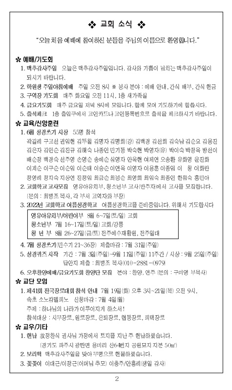 2022³â 6¿ù 12ÀÏ ±³È¸ÁÖº¸_¼º·É°¸²ÈÄ Ã¹Â°ÁÖÀÏ/ÃÑȸ¼±±³ÁÖÀÏ