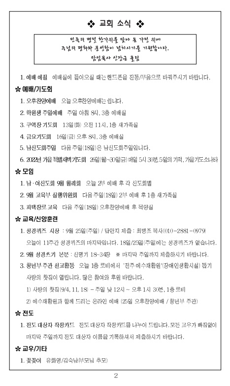 2022³â 9¿ù 18ÀÏ ±³È¸ÁÖº¸_âÁ¶Àý ¼Â°ÁÖÀÏ/³²½ÅµµÈ¸ÁÖÀÏ