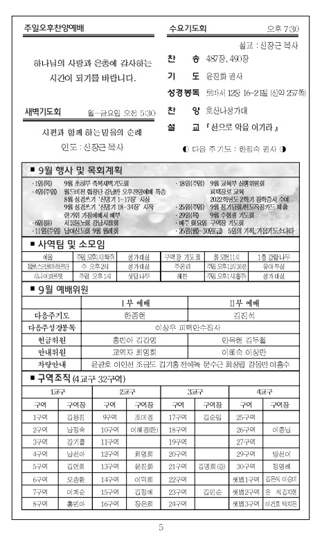 2022³â 9¿ù 4ÀÏ ±³È¸ÁÖº¸_âÁ¶Àý ù°ÁÖÀÏ/ÇѰ¡À§°¨»çÁÖÀÏ