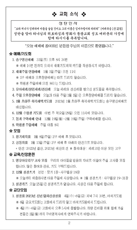 2022³â 12¿ù 4ÀÏ ±³È¸ÁÖº¸_´ë¸²Àý µÑ°ÁÖÀÏ