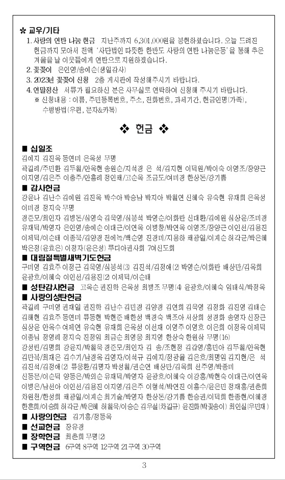 2023³â 1¿ù 15ÀÏ ±³È¸ÁÖº¸_ÁÖÇöÀý µÑ°ÁÖÀÏ/¿©½ÅµµÈ¸ÁÖÀÏ
