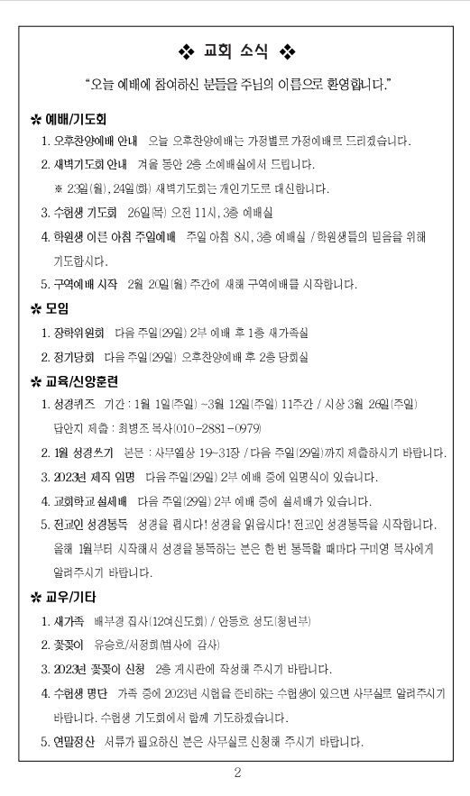 2023³â 1¿ù 1ÀÏ ±³È¸ÁÖº¸_¼ºÅºÀý ù°ÁÖÀÏ/»õÇØÁÖÀÏ