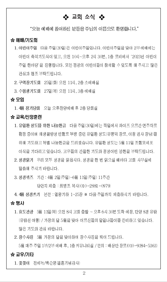 2023³â 4¿ù 23ÀÏ ±³È¸ÁÖº¸_ºÎȰÀý ¼Â°ÁÖÀÏ