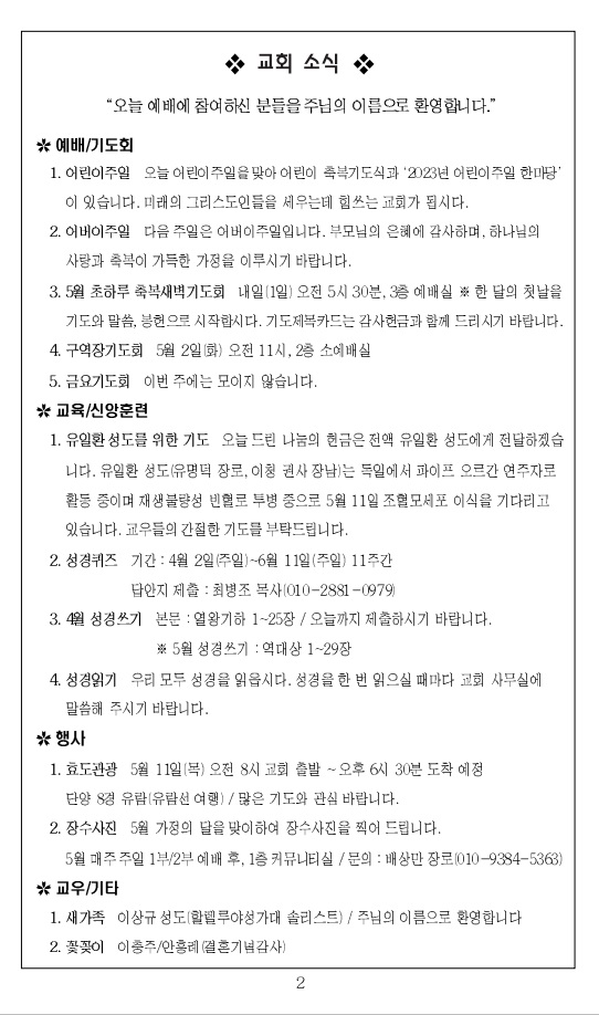2023³â 4¿ù 30ÀÏ ±³È¸ÁÖº¸_ºÎȰÀý ³Ý°ÁÖÀÏ/¾î¸°ÀÌÁÖÀÏ