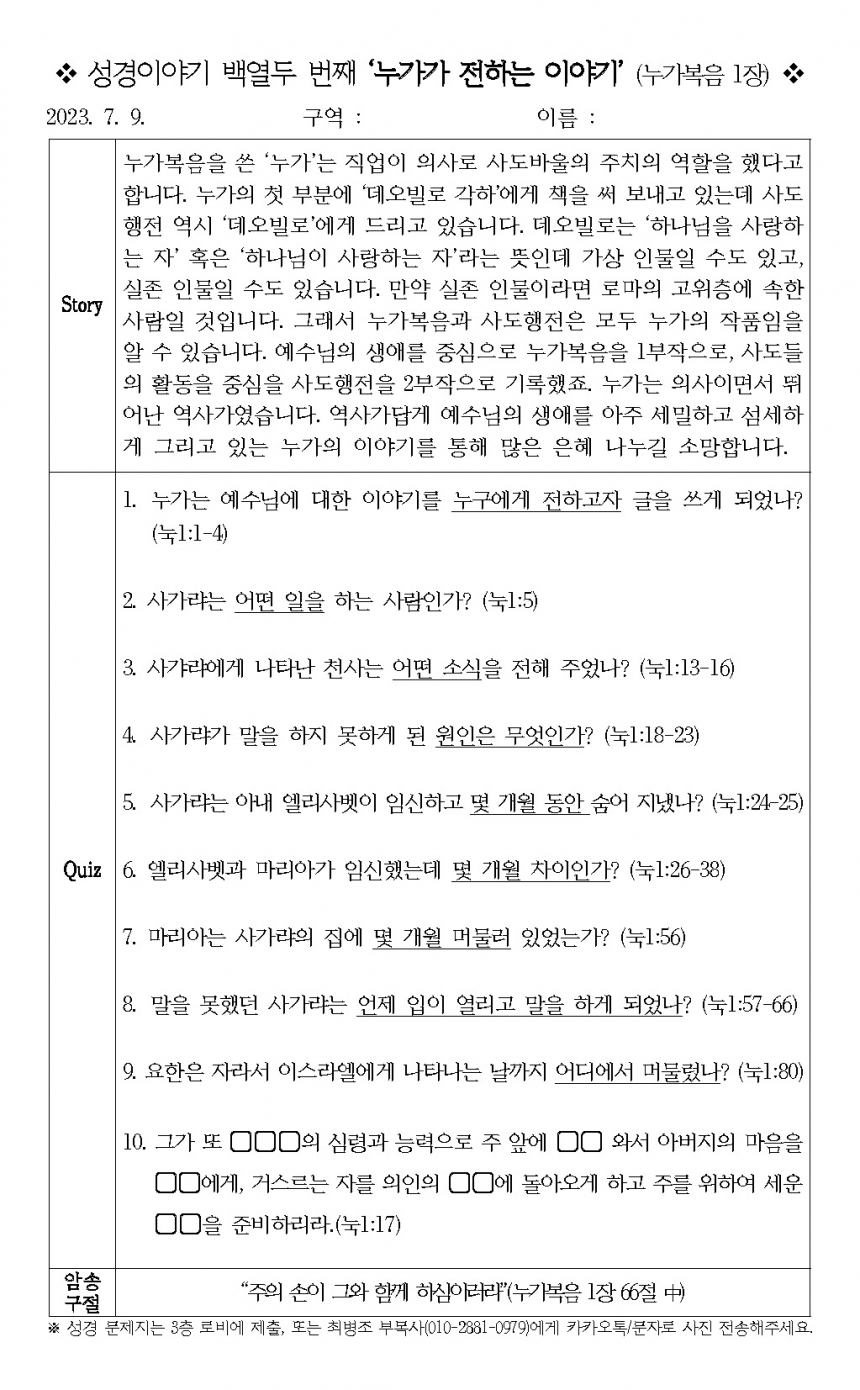 11Â÷ ¼º°æÄûÁî ´ä¾ÈÁö(7.2~9.10)