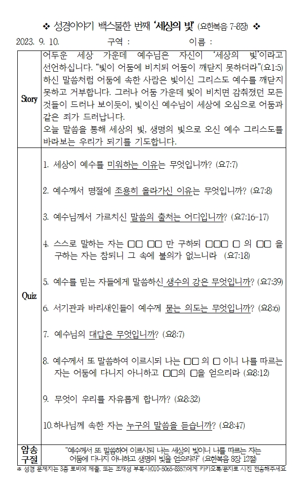 [¼º°æÄûÁî] ¼º°æÀ̾߱⠹齺¹°ÇѹøÂ° ¡®¼¼»óÀÇ ºû¡¯(¿äÇѺ¹À½ 7~8Àå)