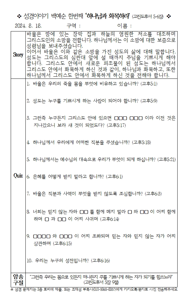 [¼º°æÄûÁî] ¼º°æÀ̾߱⠹鿹¼øÇѹøÂ° ¡°Çϳª´Ô°ú ȸñÇÏ¶ó¡± (°í¸°µµÈļ 5~6Àå)