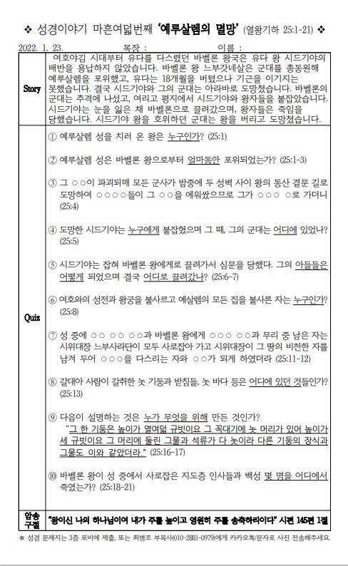 [¼º°æÄûÁî´ëȸ] ¸¶Èç¿©´ü¹øÂ° ¡®¿¹·ç»ì·½ÀÇ ¸ê¸Á¡¯ (¿¿Õ±âÇÏ 25:1-21)