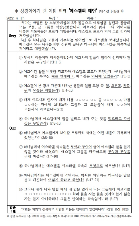 [¼º°æÄûÁî´ëȸ] ¼º°æÀ̾߱⠽®¿©´ü¹øÂ° ¡®¿¡½º°ÖÀÇ ¿¹¾ð'(¿¡½º°Ö 1~3Àå)