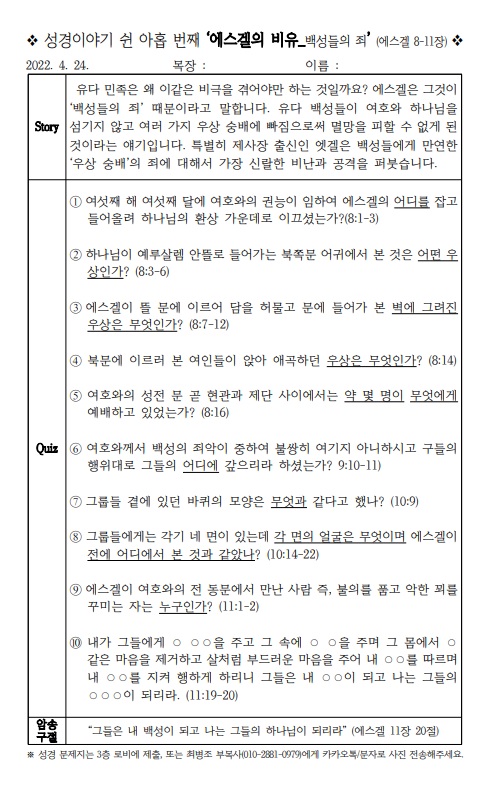 [¼º°æÄûÁî´ëȸ] ¼º°æÀ̾߱⠽®¾ÆÈ©¹øÂ° ¡®¿¡½º°ÖÀÇ ºñÀ¯_¹é¼ºµéÀÇ ÁË'(¿¡½º°Ö 8~11Àå)