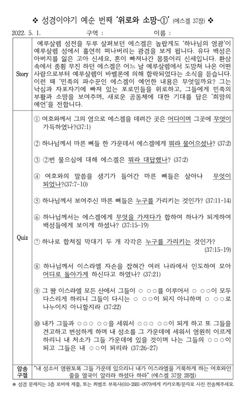 [¼º°æÄûÁî´ëȸ] ¼º°æÀ̾߱â ÀÏÈçÇѹøÂ° ¡®È¸°³-Çϳª´ÔÀÇ ¾à¼Ó'(¿ä¿¤ 2Àå 18Àý~3Àå)