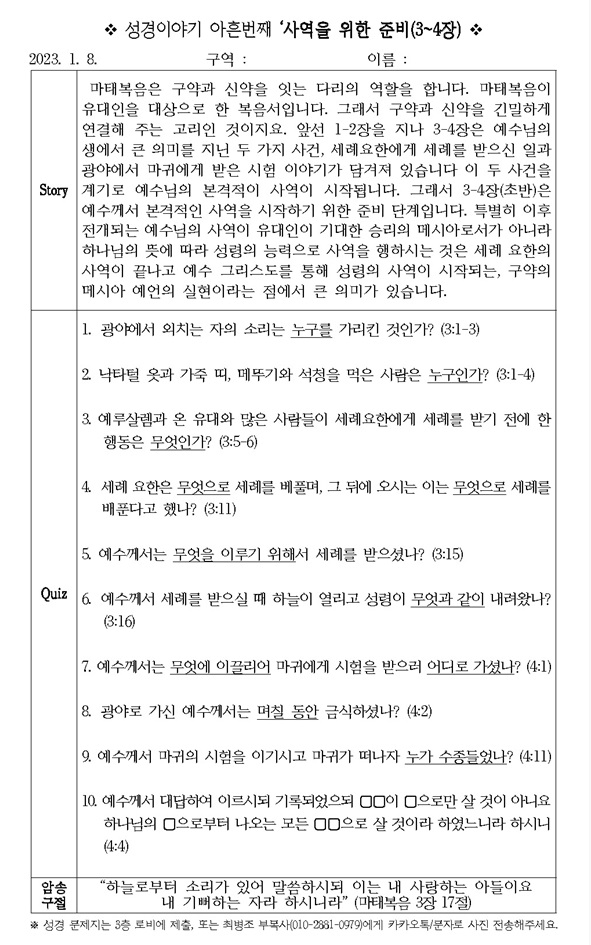 [¼º°æÄûÁî´ëȸ] ¼º°æÀ̾߱⠾ÆÈç¹øÂ° '»ç¿ªÀ» À§ÇÑ Áغñ(3~4Àå)'