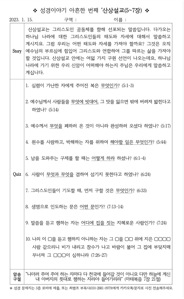[¼º°æÄûÁî´ëȸ] ¼º°æÀ̾߱⠹éµÎ¹øÂ° '¿¹¼öÀÇ º¹À½' (¸¶°¡º¹À½ 1Àå)