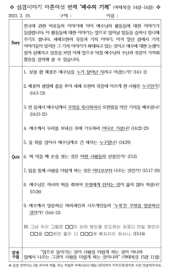 [¼º°æÄûÁî´ëȸ] ¼º°æÀ̾߱⠾ÆÈç¿©¼¸¹øÂ° '¿¹¼öÀÇ ±âÀû' (¸¶Åº¹À½ 14~16Àå)