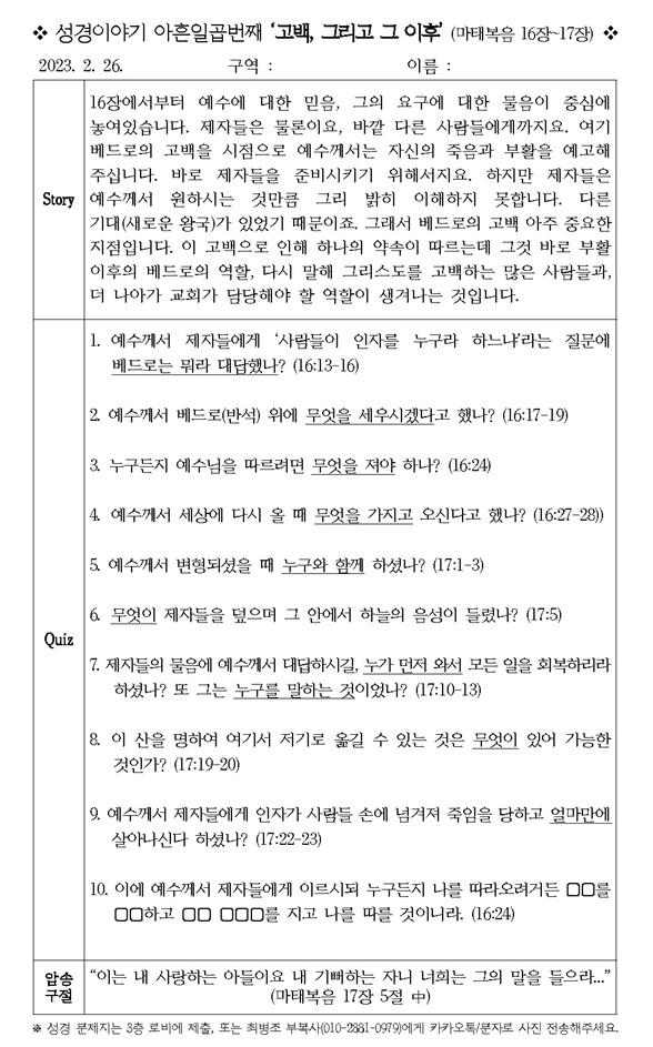 [¼º°æÄûÁî´ëȸ] ¼º°æÀ̾߱⠾ÆÈçÀϰö¹øÂ° '°í¹é, ±×¸®°í ±× ÀÌÈÄ (¸¶Åº¹À½ 16~17Àå)